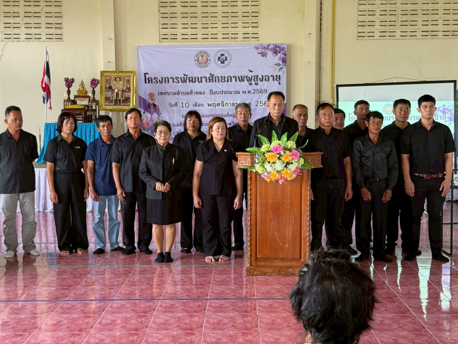 วันที่ 10 ตุลาคม 2568 เทศบาลตำบลท้ายดง โดยกองสวัสดิการสังคม ดำเนินโครงการพัฒนาศักยภาพผู้สูงอายุเทศบาลตำบลท้ายดง ประจำปีงบประมาณ พ.ศ.2569 ในหลักสูตร โรงเรียนผู้สูงอายุเทศบาลตำบลท้ายดง ภาคเรียนที่ 2 ปีการศึกษา 2568 ณ อาคารอเนกประสงค์ หมู่ที่ 2