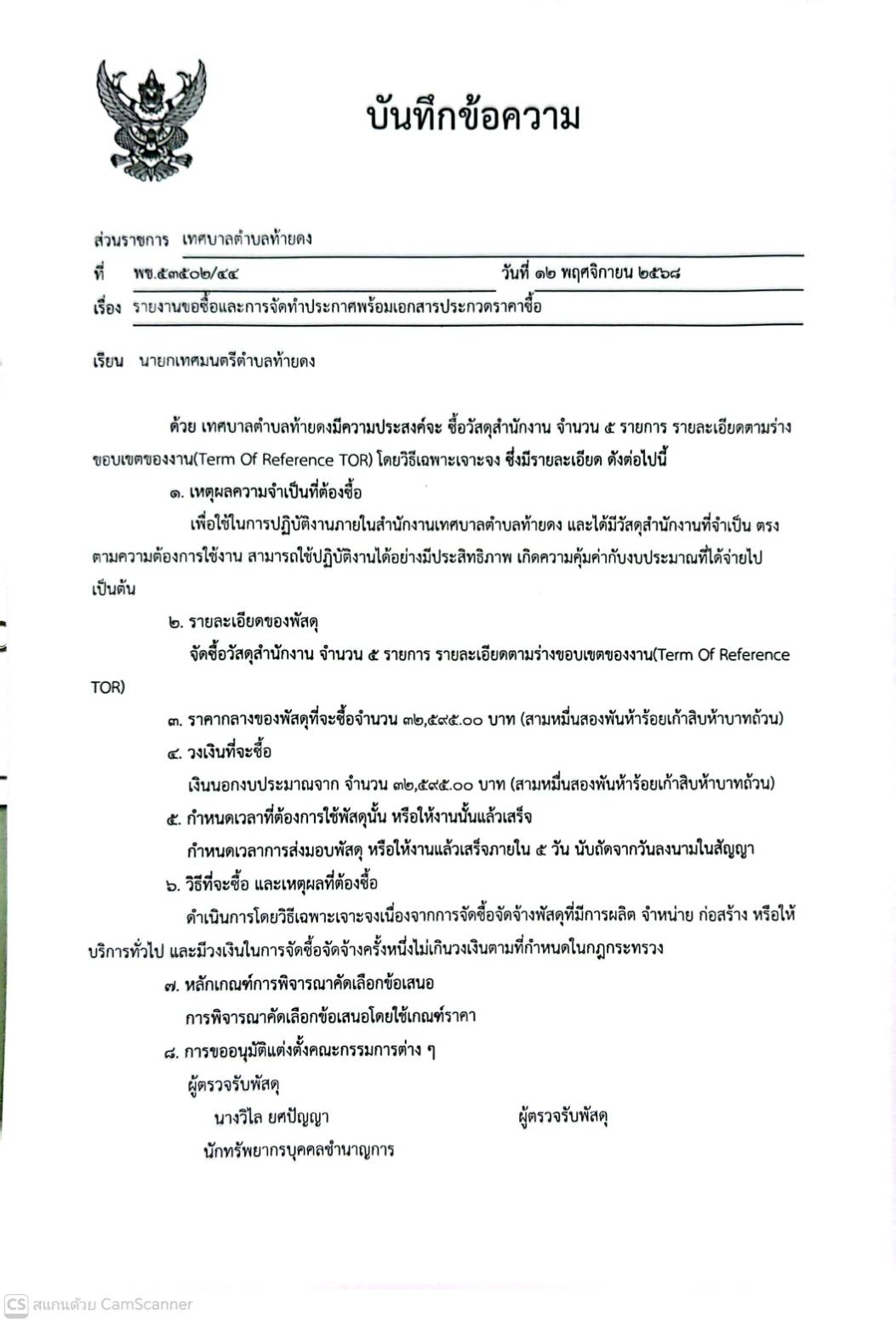 รายงานขอซื้อและการจัดทำประกาศพร้อมเอกสารประกวดราคาซื้อ จัดซื้อวัสดุสำนักงาน จำนวน 5 รายการ รายละเอียดตามร่างขอบเขตของงาน (Term Of Reference :TOR)
