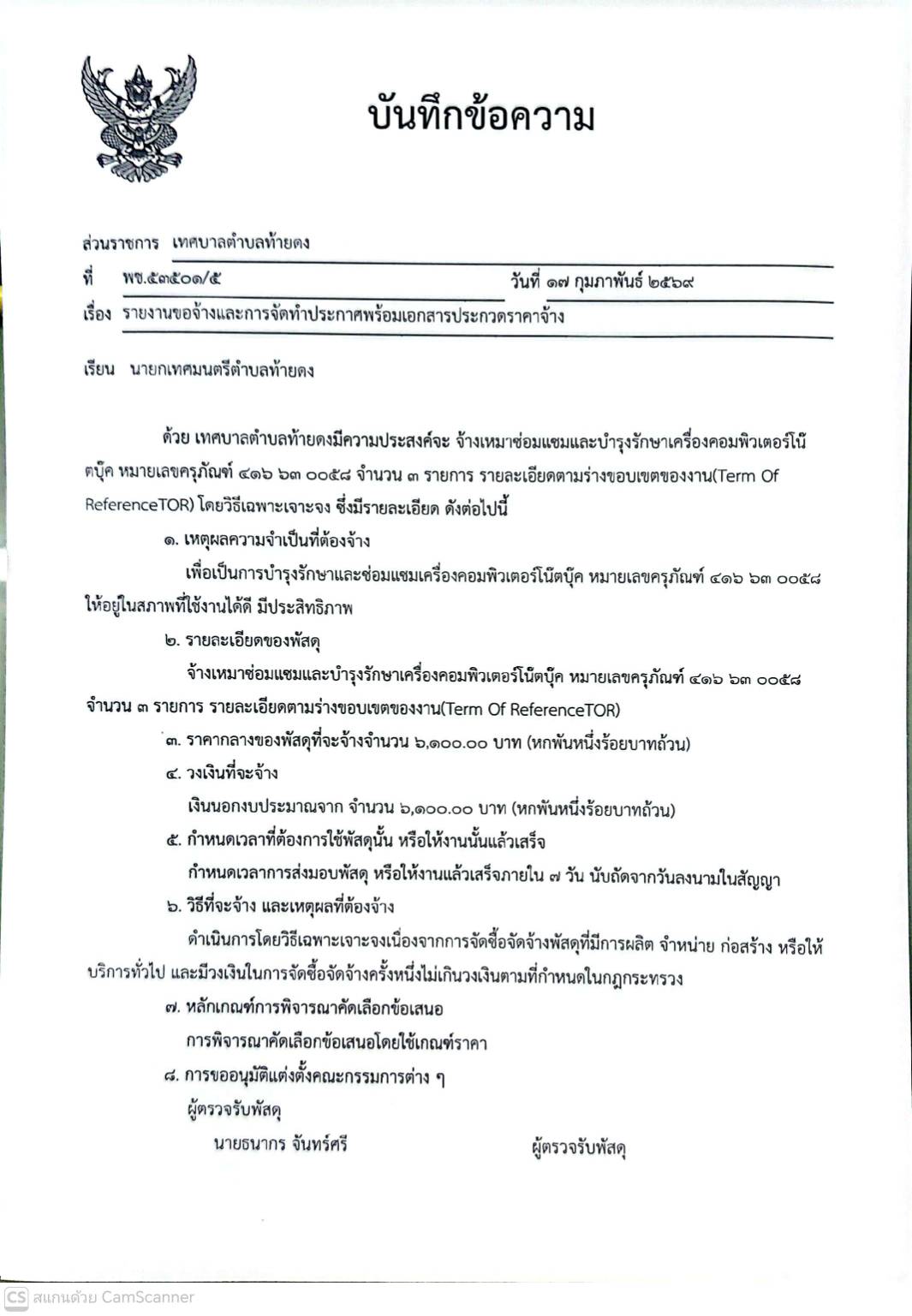 ประกาศจัดซื้อจัดจ้าง ประจำปีงบประมาณ 2569
