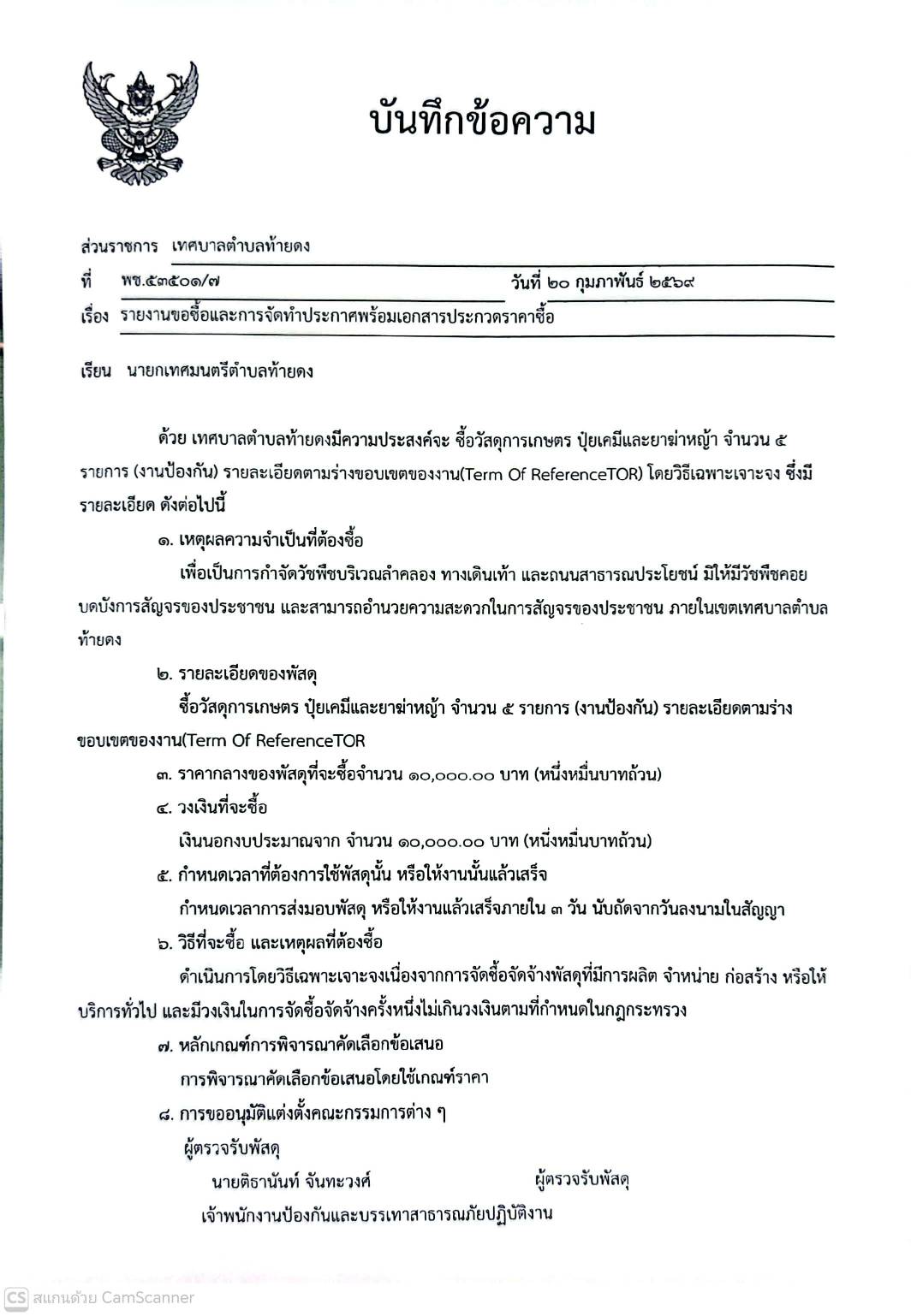 รายงานขอซื้อและการจัดทำประกาศพร้อมเอกสารประกวดราคาซื้อ จัดซื้อวัสดุการเกษตร(ปุ๋ยเคมีและยาฆ่าแมลง)งานป้องกัน จำนวน 5 รายการ รายละเอียดตามร่างขอบเขตของงาน (Term Of Reference :TOR)