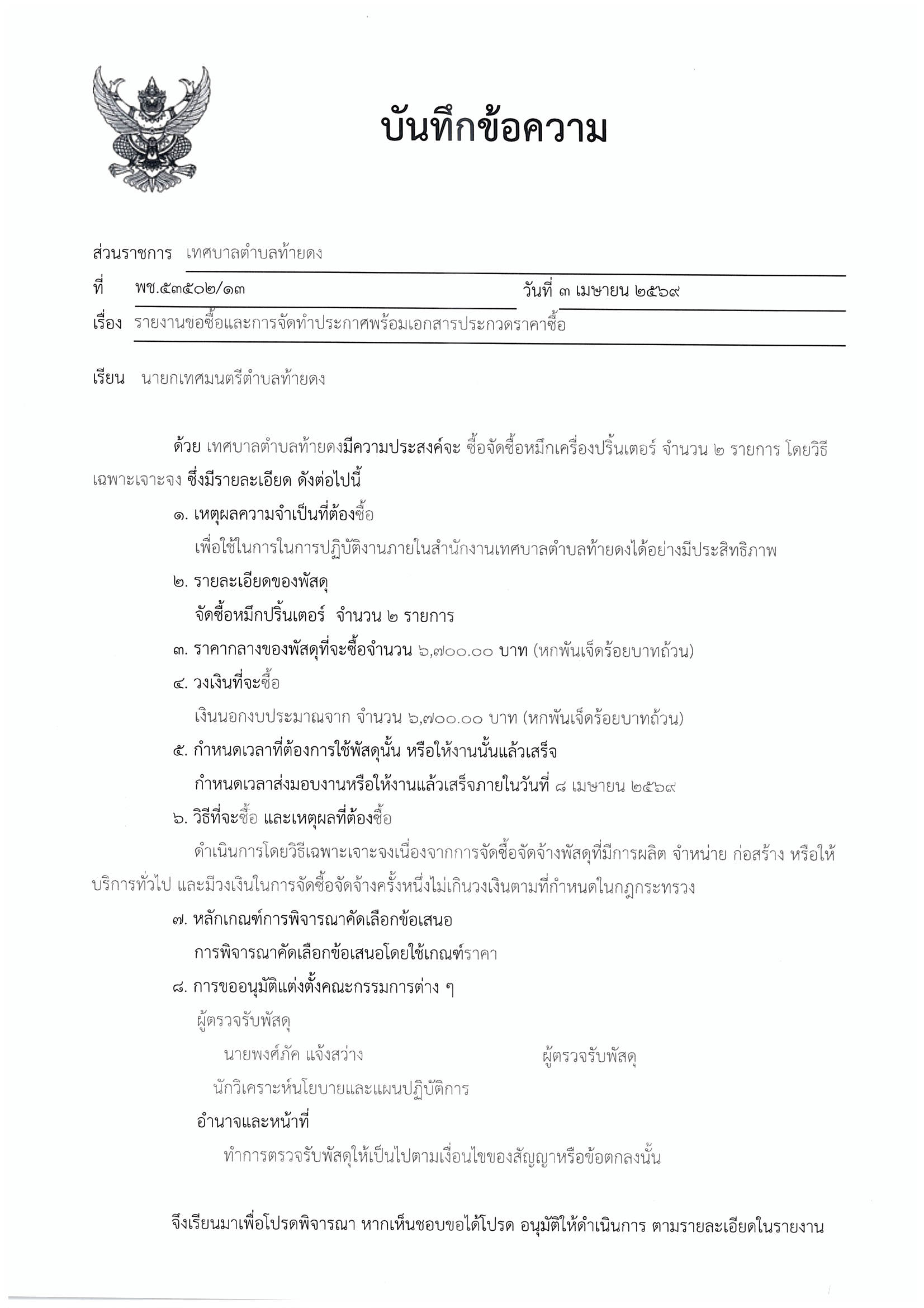 รายงานขอซื้อและการจัดทำประกาศพร้อมเอกสารประกวดราคาซื้อหมึกเครื่องปริ้นเตอร์ จำนวน 2 รายการ