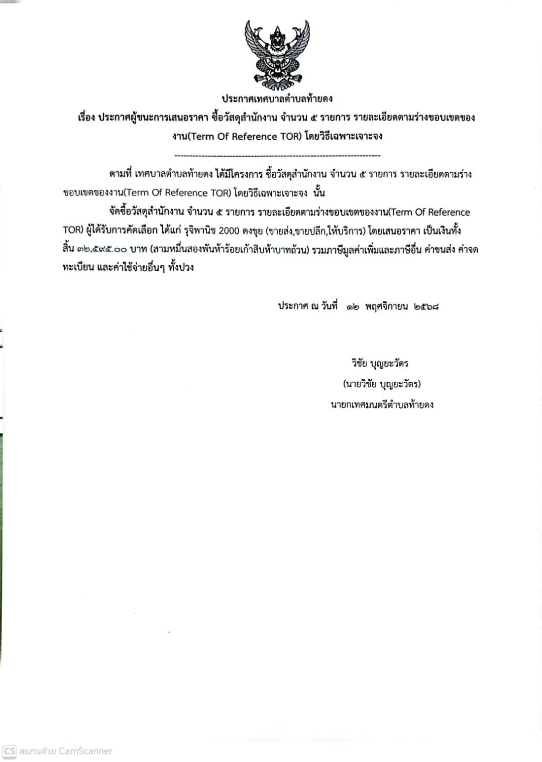 ประกาศผู้ชนะราคา ประจำปีงบประมาณ 2568