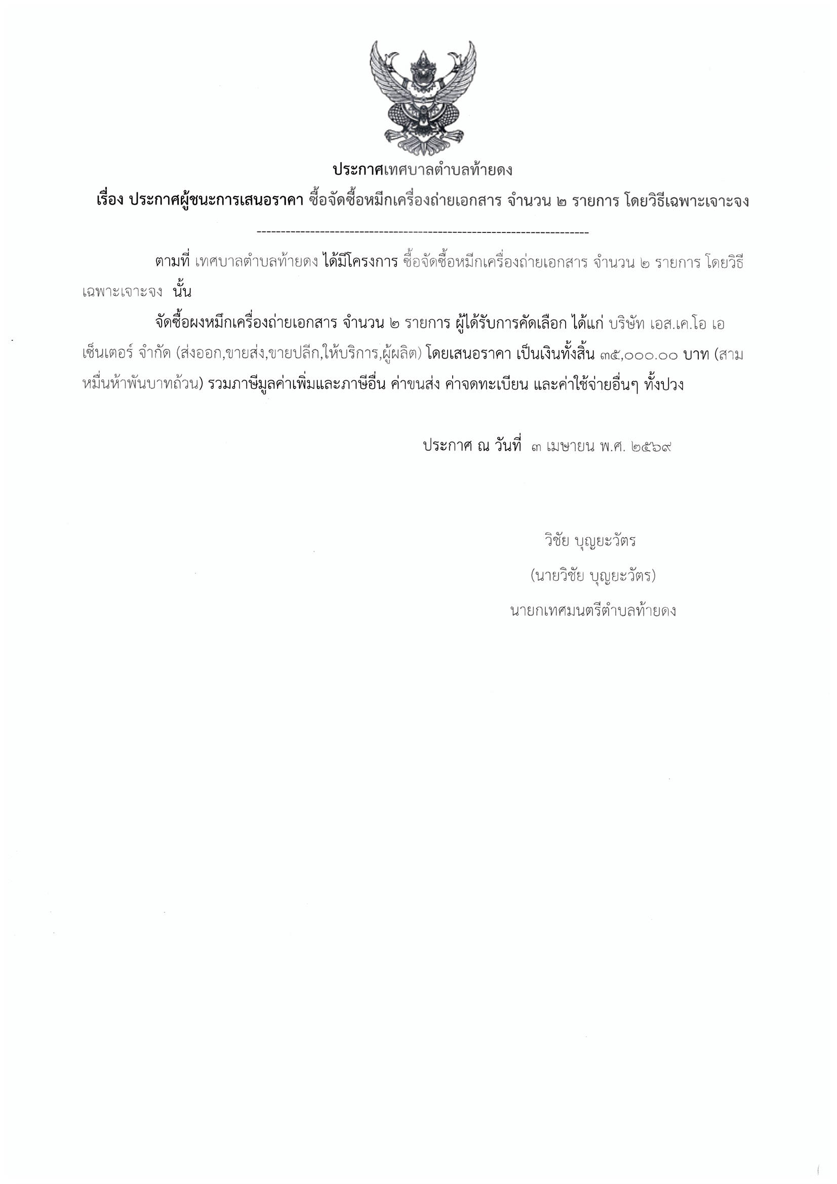ประกาศผู้ชนะราคา ประจำปีงบประมาณ 2569