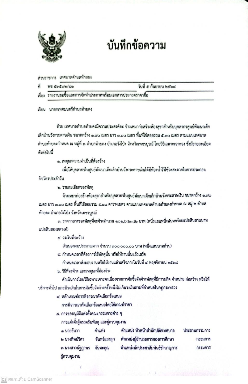 รายงานขอซื้อและการจัดทำประกาศพร้อมเอกสารประกวดราคาซื้อ จ้างเหมาก่อสร้างห้องสุขาสำหรับบุคลากรศูนย์พัฒนาเด็กเล็กบ้านวังกระดาษเงิน ขนาดกว้าง 0.70 เมตร ยาว 3.00 เมตร พื้นที่ใช้สอยรวม 5.10 เมตร ตามแบบเทศบาลตำบลท้ายดงกำหนด ณ หมู่ที่ 3 ตำบลท้ายดง อำเภอวังโป่ง จั