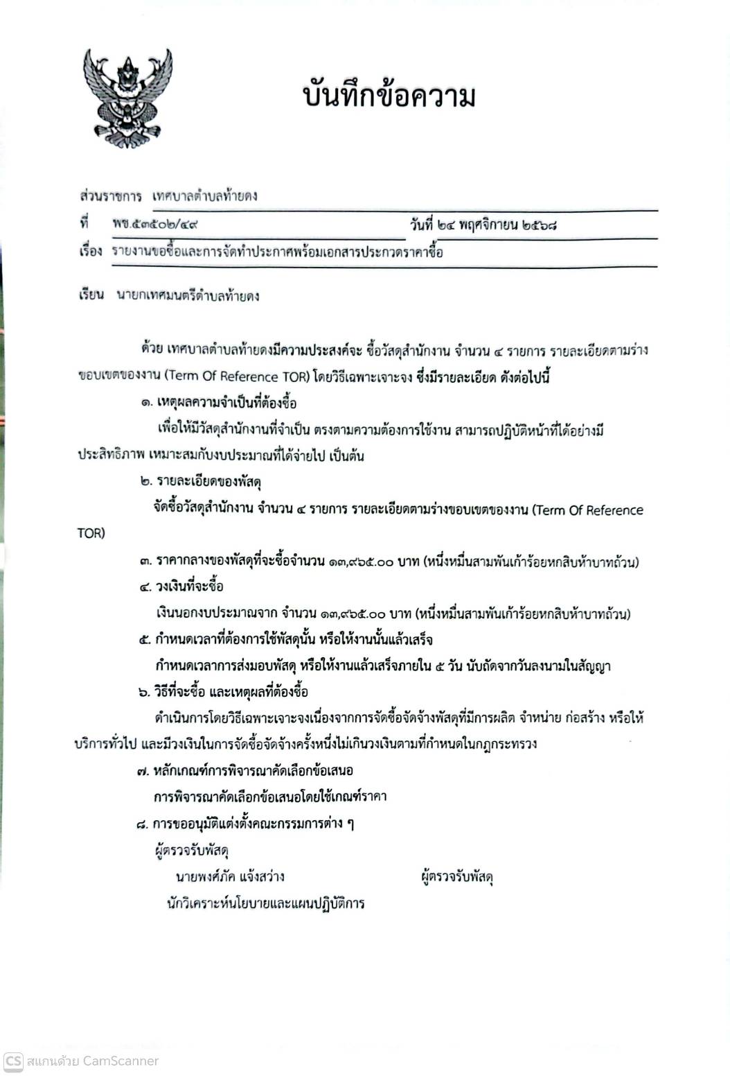 รายงานขอซื้อและการจัดทำประกาศพร้อมเอกสารประกวดราคาซื้อ จัดซื้อวัสดุสำนักงาน จำนวน 4 รายการ รายละเอียดตามร่างขอบเขตของงาน (Term Of Reference :TOR)
