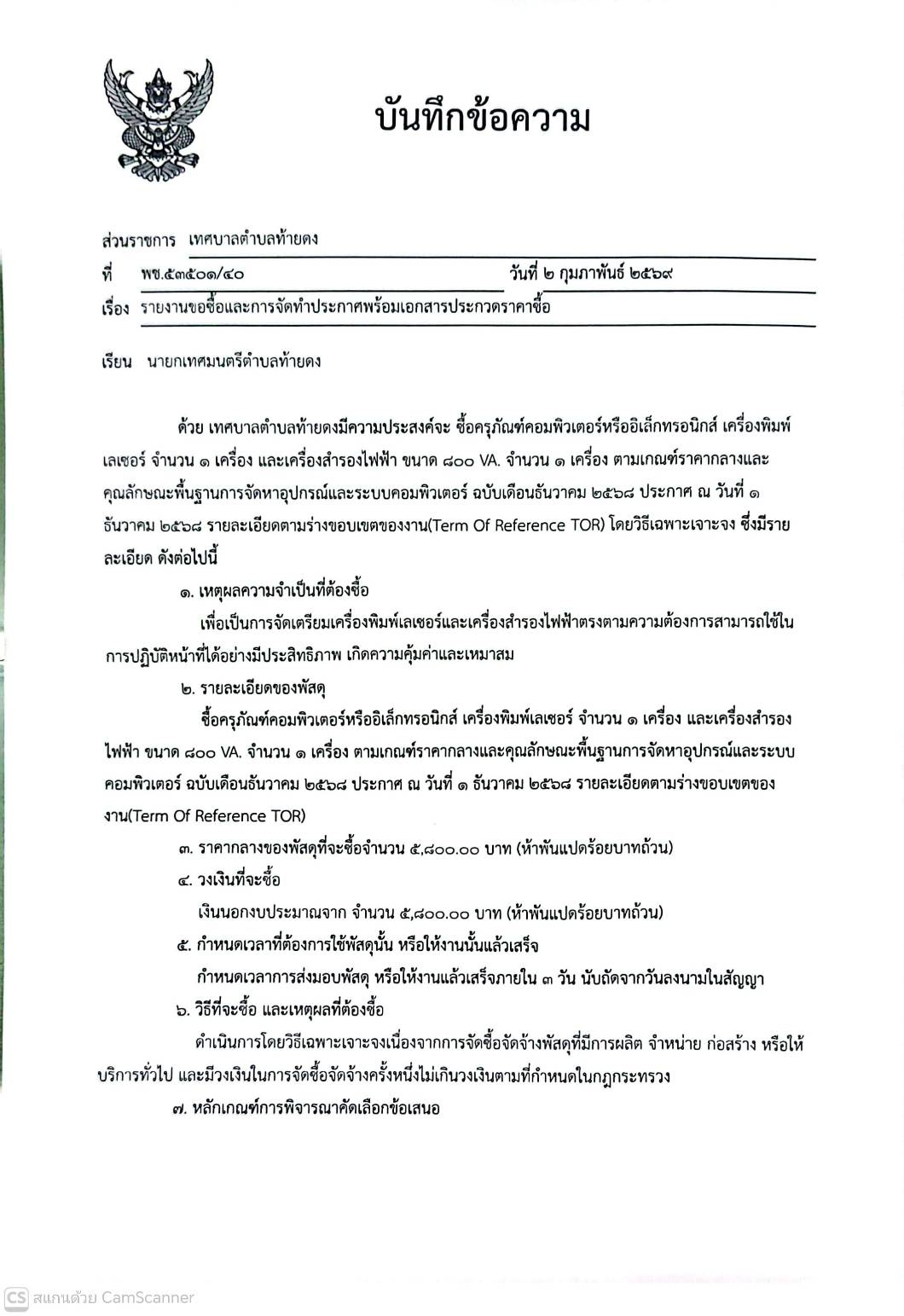 รายงานขอซื้อและการจัดทำประกาศพร้อมเอกสารประกวดราคาซื้อ จัดซื้อครุภัณฑ์คอมพิวเตอร์หรืออิเล็คทรอนิกส์ เครื่องพิมพ์เลเซอร์ จำนวน 1 เครื่อง และเครื่องสำรองไฟฟ้า จำนวน 1 เครื่อง ตามเกณฑ์ราคากลางและคุณลักษณะพื้นฐานการจัดหาอุปกรณ์และระบบคอมพิวเตอร์ ฉบับเดือนธันว