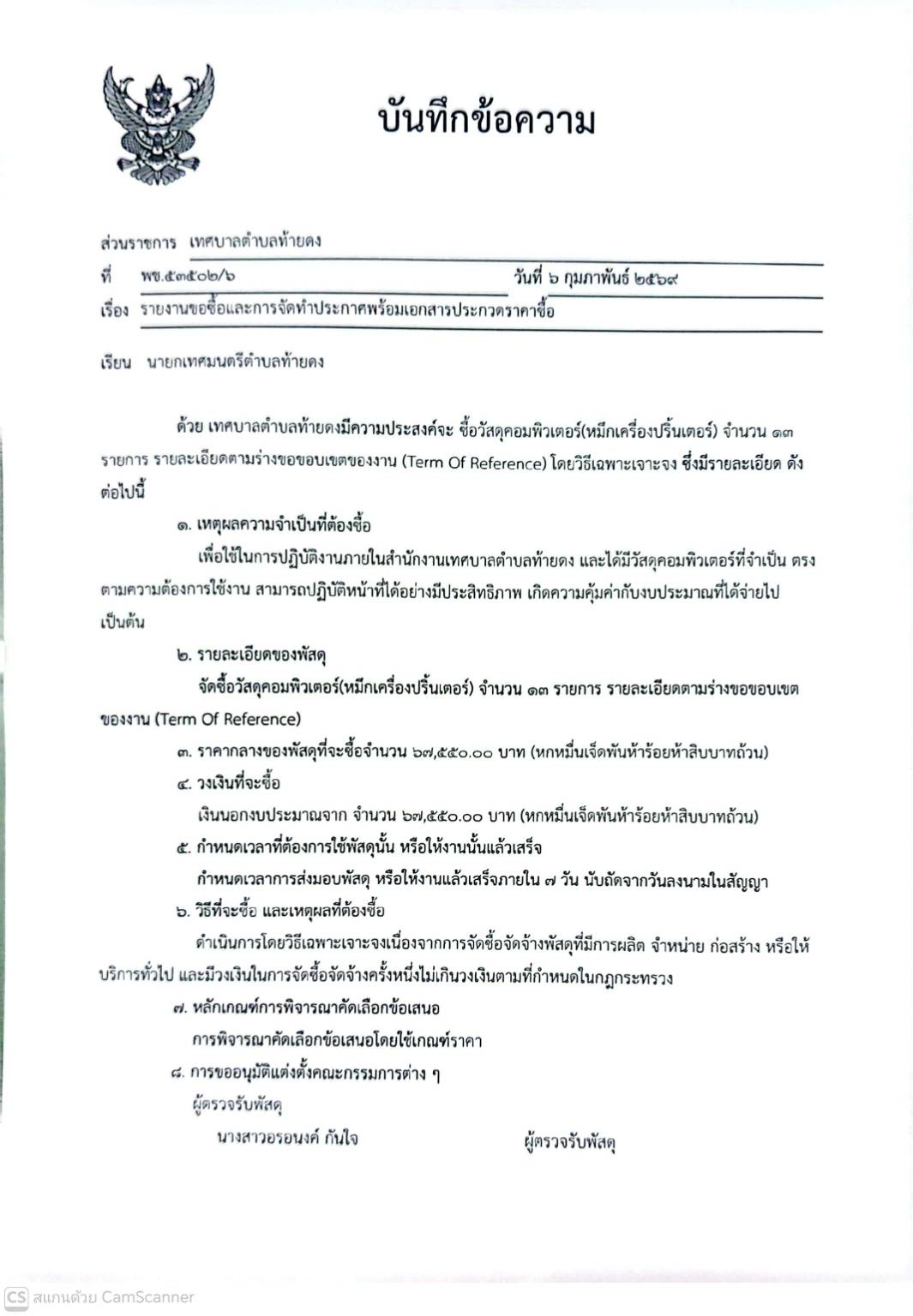 รายงานขอซื้อและการจัดทำประกาศพร้อมเอกสารประกวดราคาซื้อ จัดซื้อวัสดุคอมพิวเตอร์(หมึกเครื่องปริ้นเตอร์) จำนวน 13 รายการ รายละเอียดตามร่างขอบเขตของงาน (Term Of Reference :TOR)