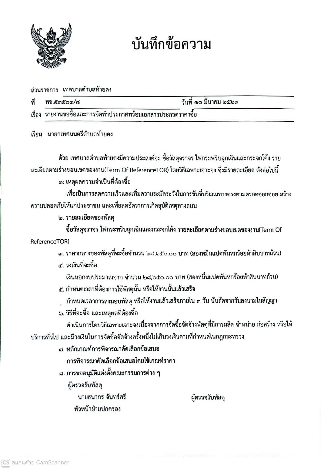 รายงานขอซื้อและการจัดทำประกาศพร้อมเอกสารประกวดราคาซื้อ จัดซื้อวัสดุจราจร ไฟกระพริบฉุกเฉินและกระจกโค้ง