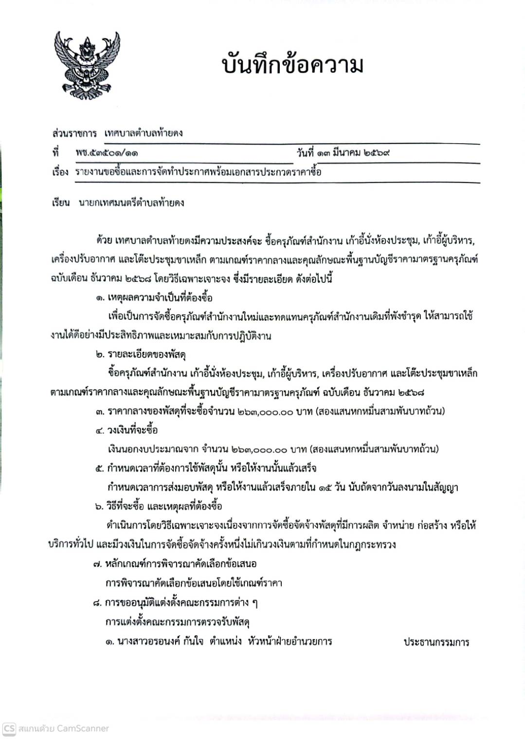 รายงานขอซื้อและการจัดทำประกาศพร้อมเอกสารประกวดราคาซื้อ จัดซื้อครุภัณฑ์สำนักงาน เก้าอี้นั่งห้องประชุม, เก้าอี้ผู้บริหาร, เครื่องปรับอากาศ และโต๊ะประชุมขาเหล็ก ตามเกณฑ์ราคากลางและพื้นฐานบัญชีราคามาตรฐานครุภัณฑ์ ฉบับเดือนธันวาคม 2568
