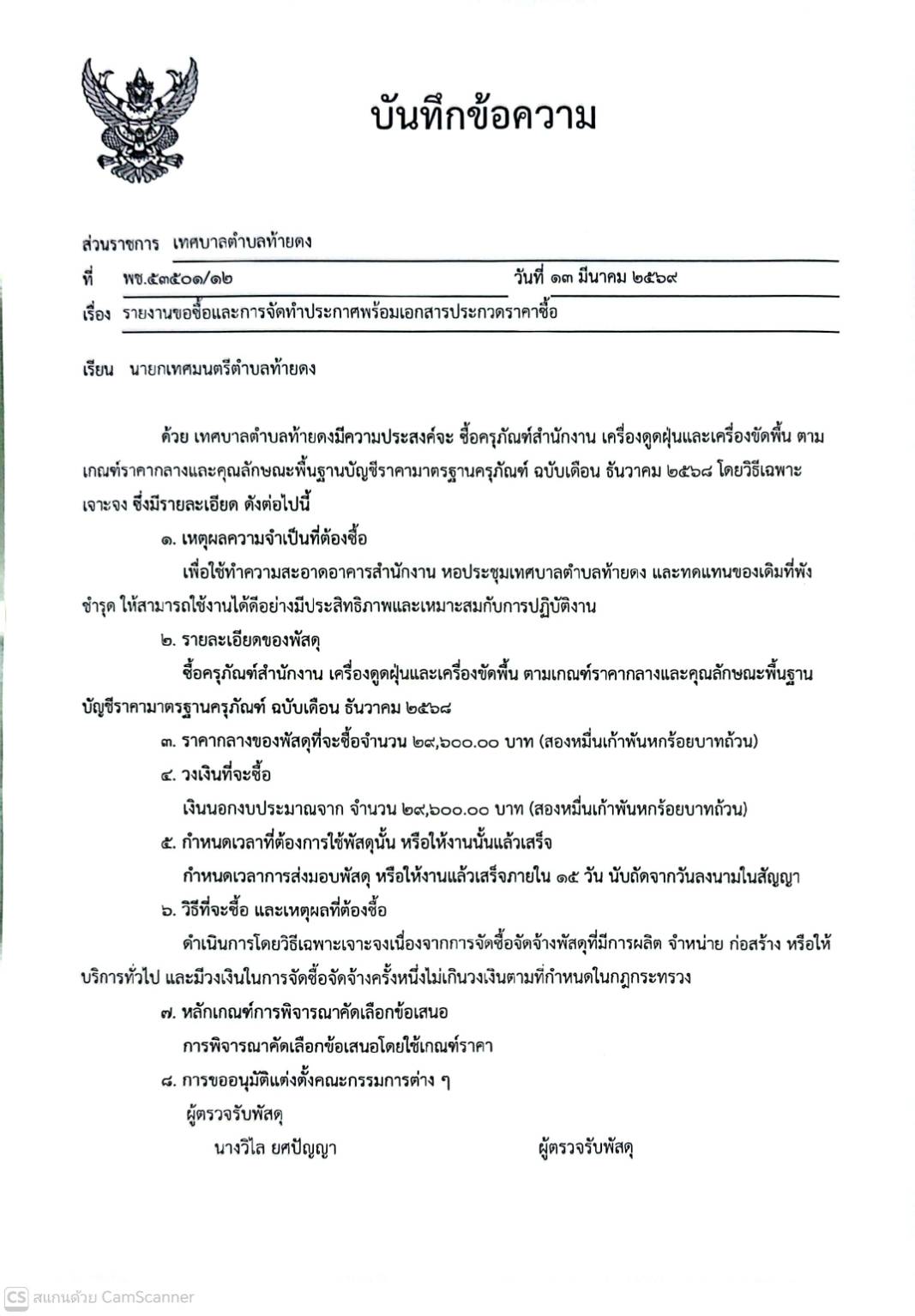 รายงานขอซื้อและการจัดทำประกาศพร้อมเอกสารประกวดราคาซื้อ จัดซื้อครุภัณฑ์สำนักงาน เครื่องดูดฝ่นและเครื่องขัดพื้น ตามเกณฑ์ราคากลางและพื้นฐานบัญชีราคามาตรฐานครุภัณฑ์ ฉบับเดือนธันวาคม 2568