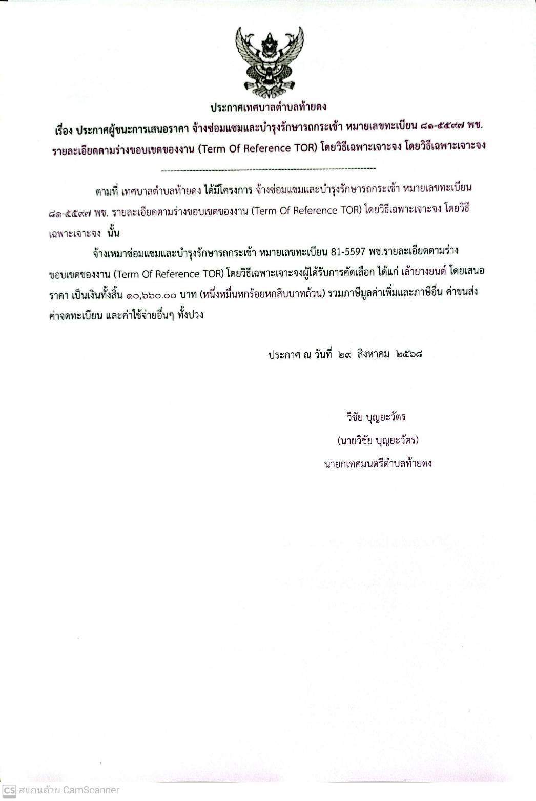 ประกาศผู้ชนะราคา ประจำปีงบประมาณ 2568