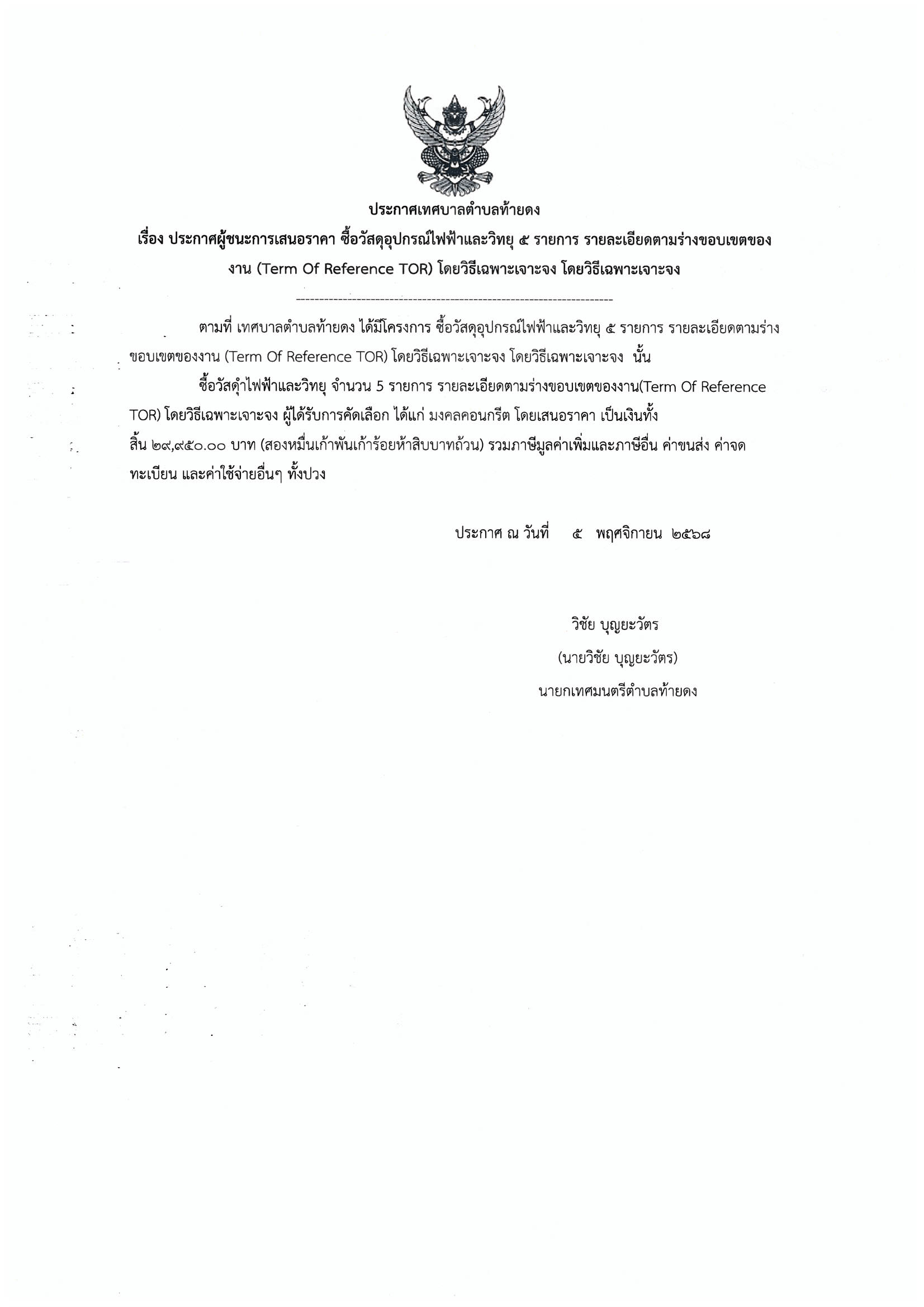 ประกาศผู้ชนะราคา ประจำปีงบประมาณ 2568