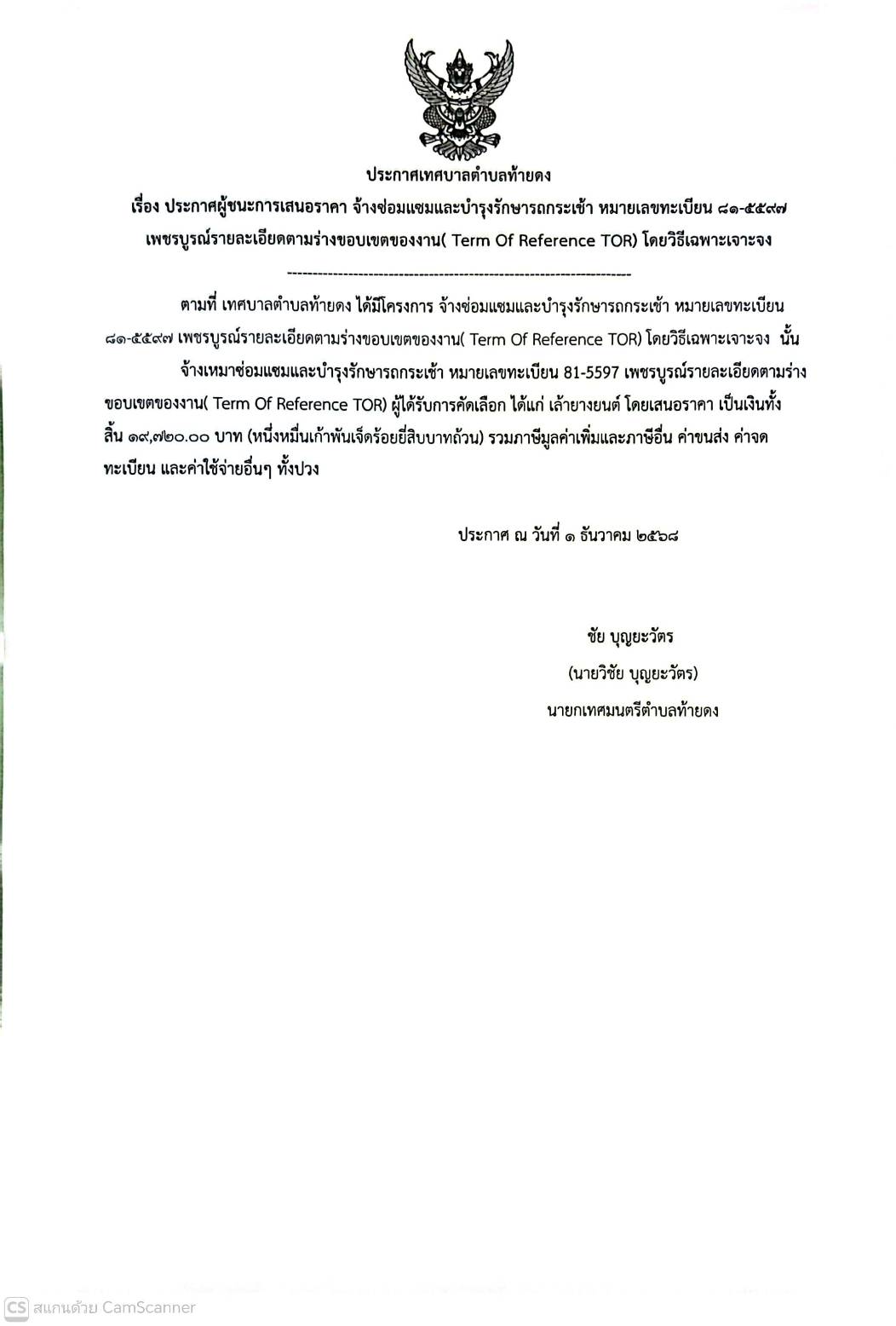 ประกาศผู้ชนะราคา ประจำปีงบประมาณ 2565