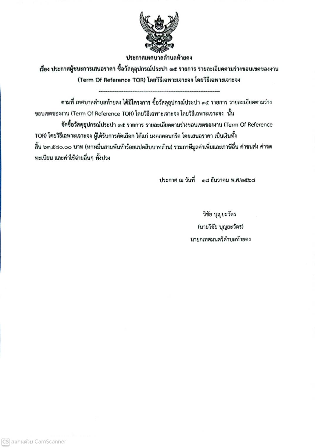 ประกาศผู้ชนะราคา ประจำปีงบประมาณ 2568